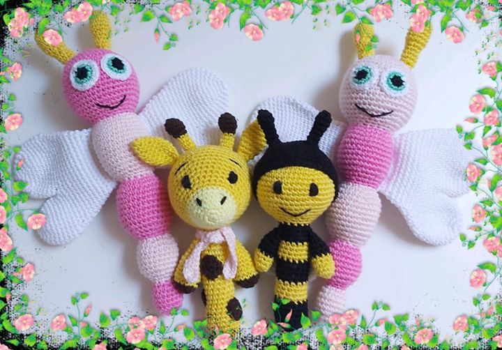 – čebelica in žirafa (velikost 18 cm) 20,- € (+ morebitna poštnina)